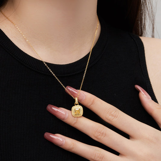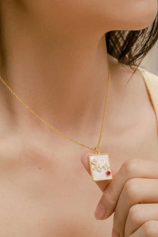 Mama and Charms Pendant Necklace - 18k Gold Plated